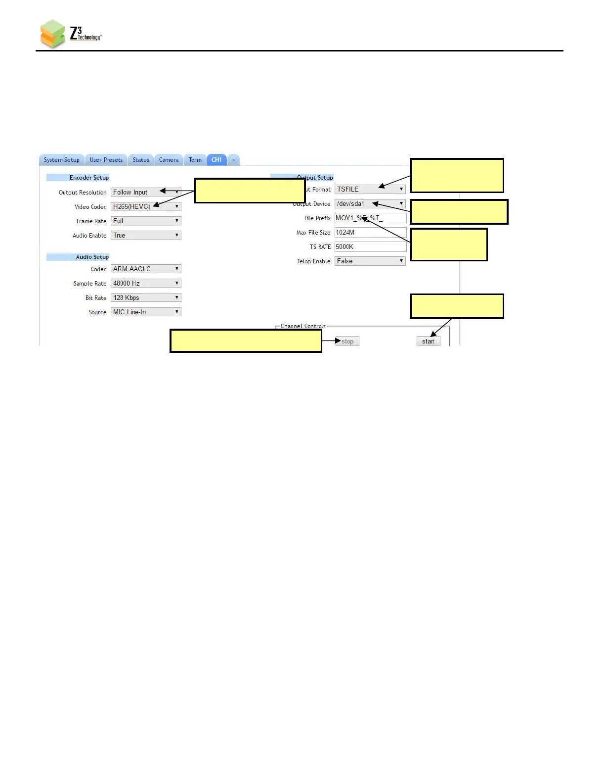 (8) Click on the Start button. After a moment, the encoder status will change to RUNNING and the