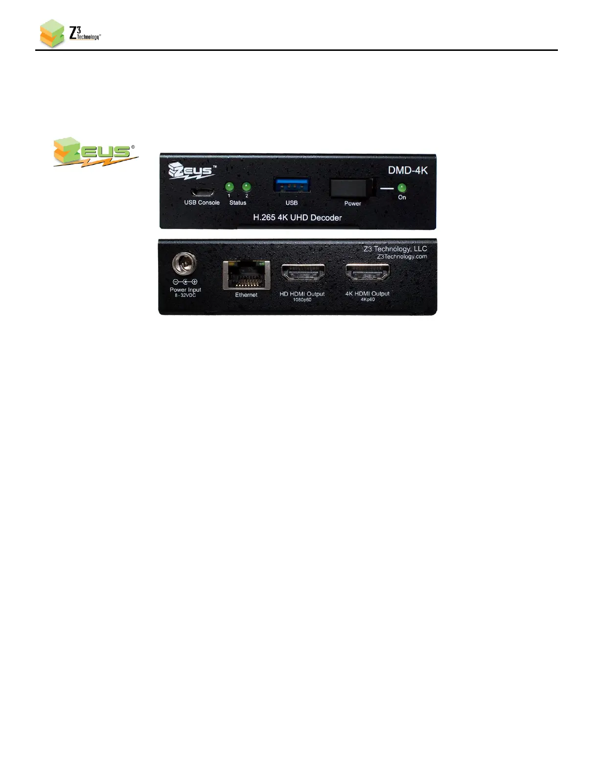 Z3 Technology ZCube-21 - ZEUS  DMD-4 K Decoder; Figure 45 ZEUS DMD-4 K H.265 Decoder