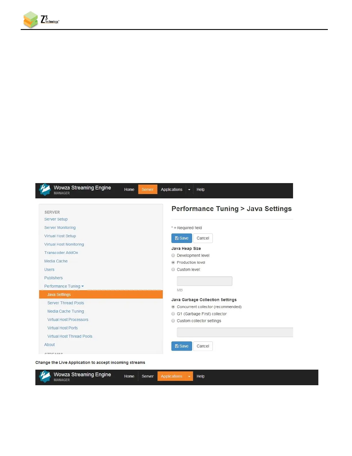 To configure Wowza to work with RTMP streaming from the ZCube-21, the following steps are needed: