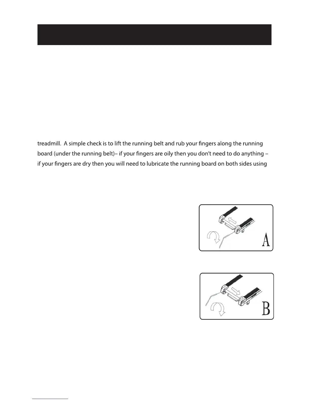lubricate, tighten and align the running belt correctly.