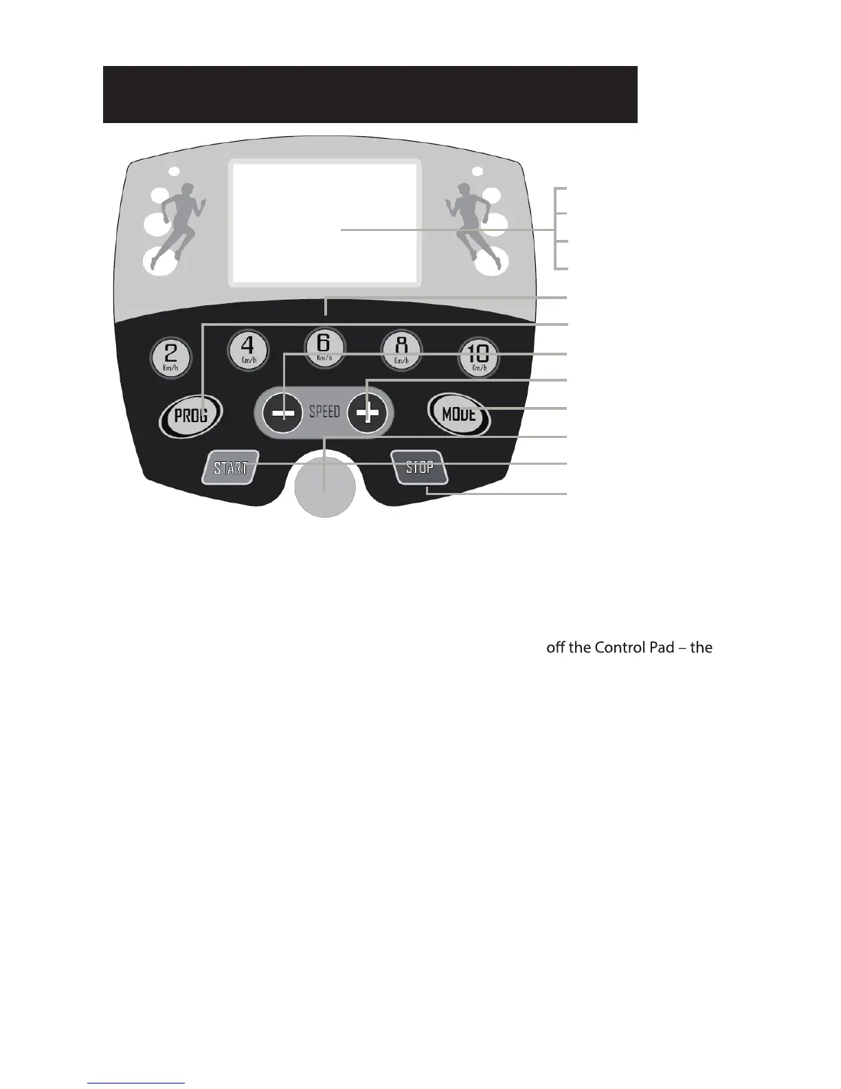 To start the treadmill, the Safety Key must be attached to the Control Pad (yellow circle) and