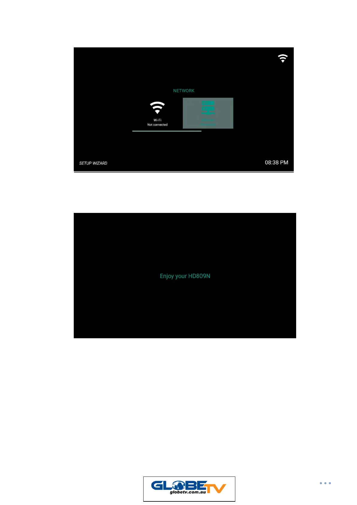 5) Network Set to Ethernet if connecting ZAAPTV device to Modem by Cable, alternatively use Wi-Fi if not