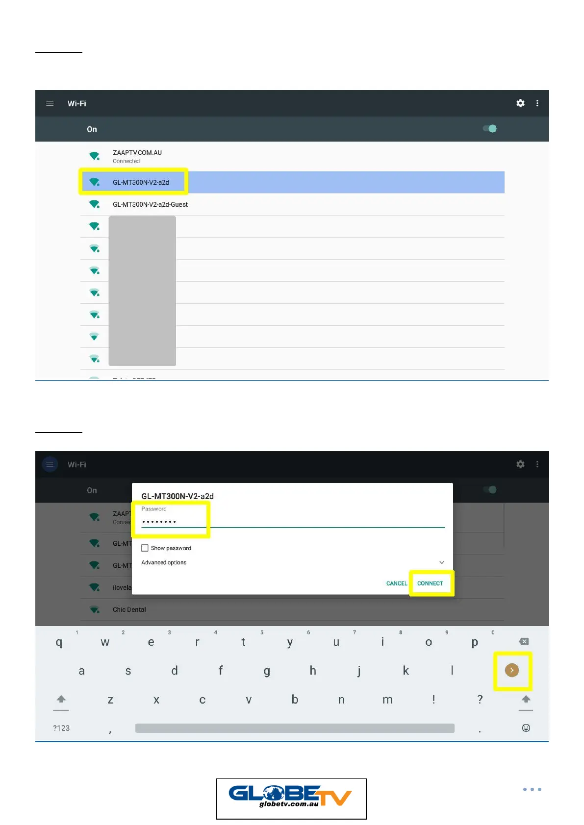 STEP 3: Select Wi-Fi and choose the name of your Wi-Fi. Press OK and enter the