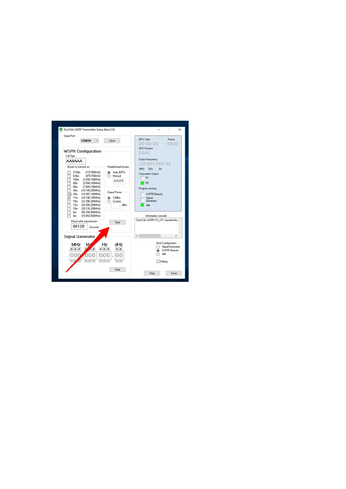8. To start the WSPR beacon click the “Start” button in the WSPR