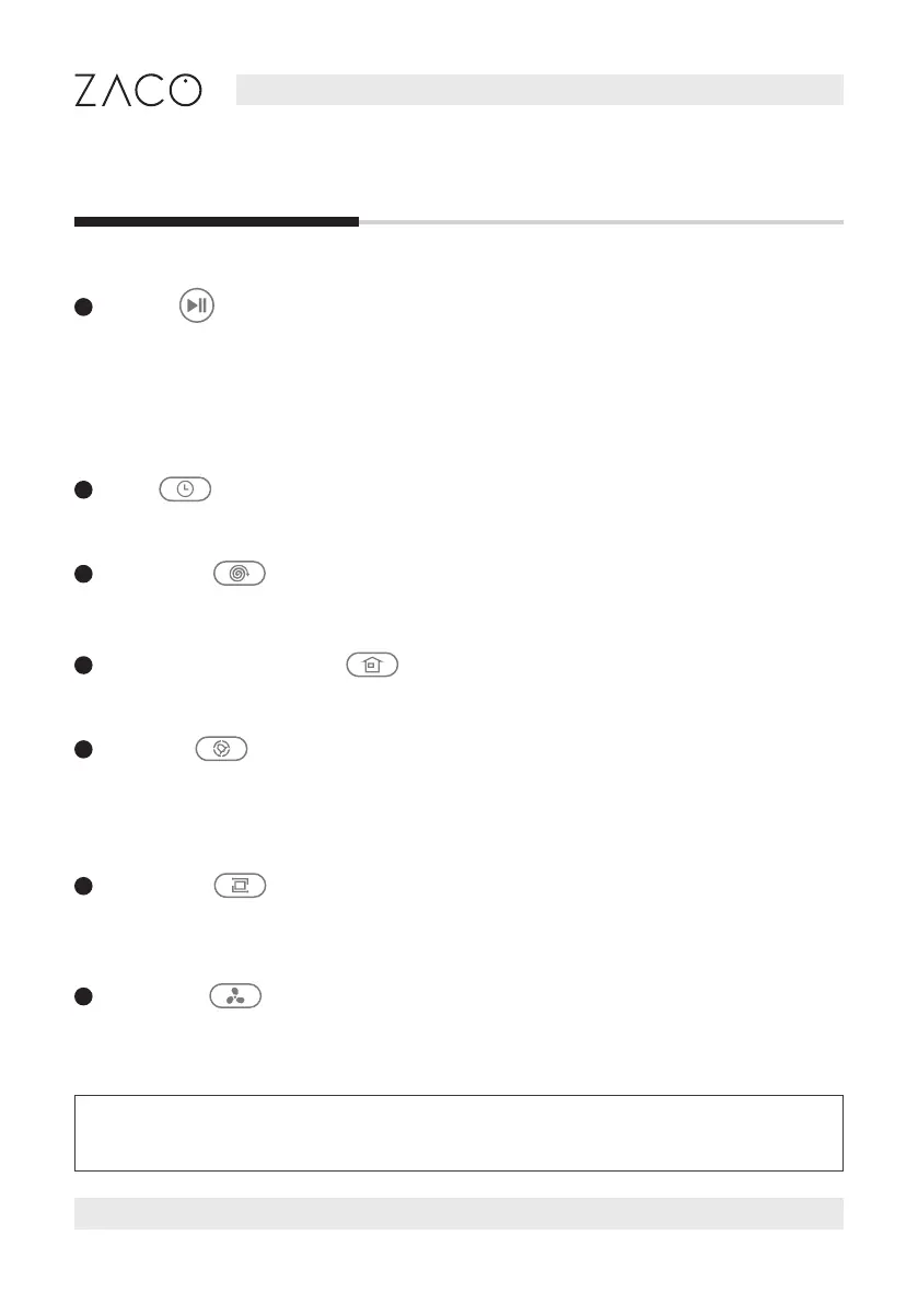 Press this button to set up a cleaning schedule. The robot will start cleaning according