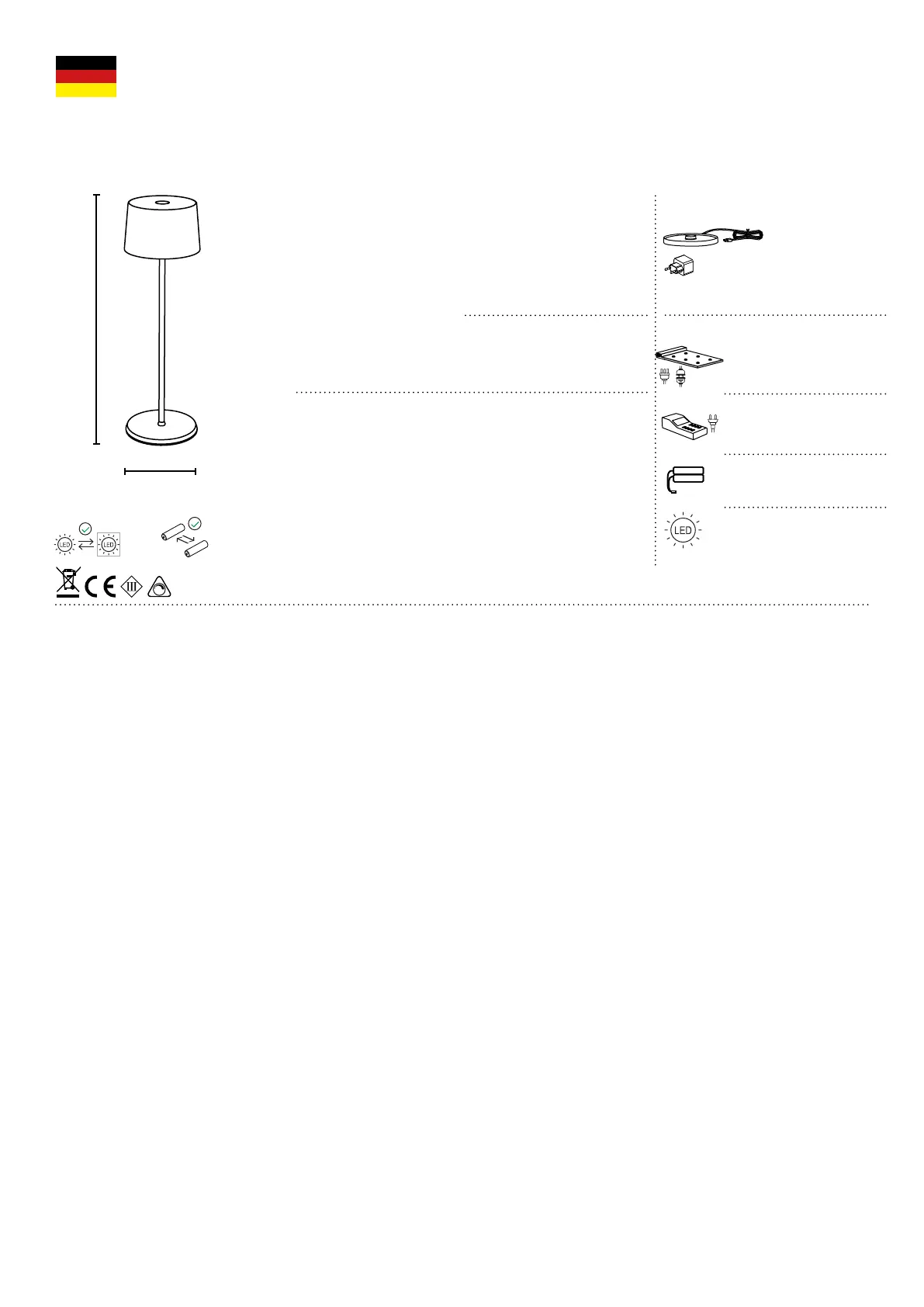 - Die Lampe funktioniert auch dann korrekt, wenn sie an die Ladestation angeschlossen ist.