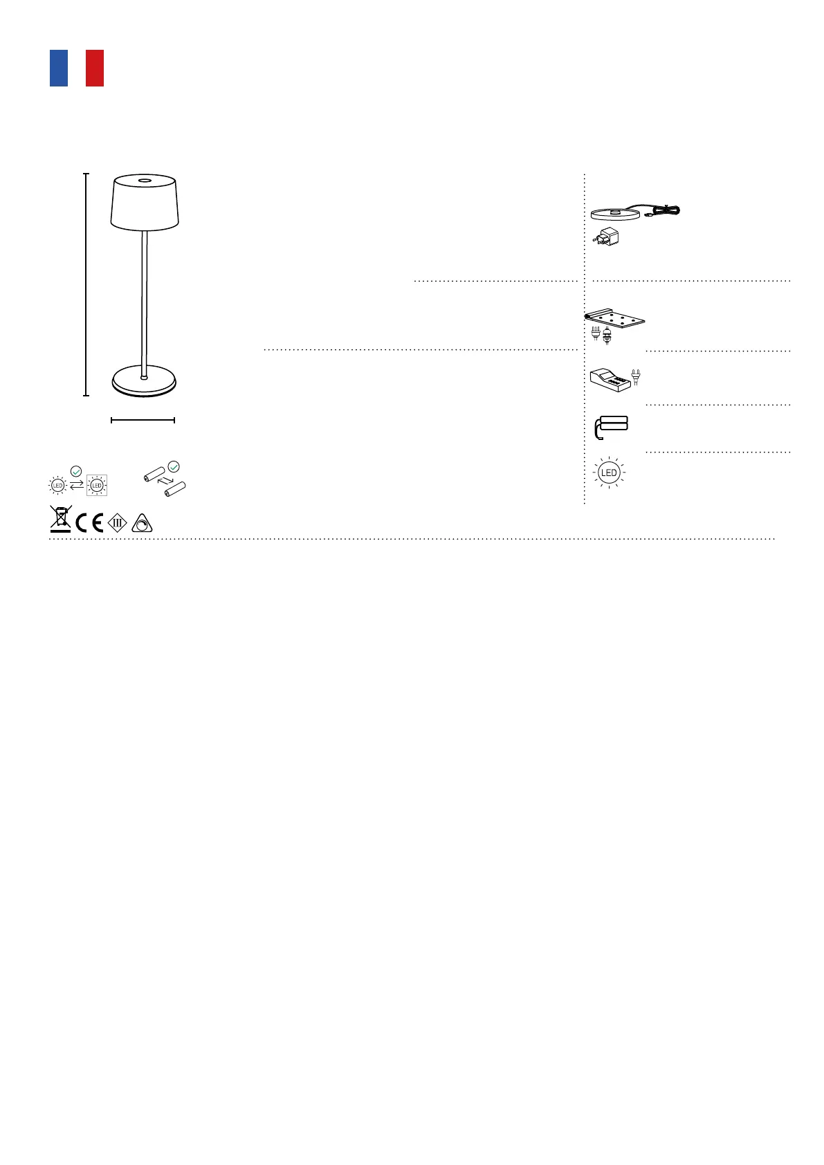 - Il est conseillé d’utiliser le chargeur et la station de charge d’origine. En alternative, utiliser un chargeur à 1A max. certifié.