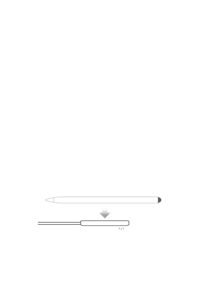 • Lorsque le stylet est au bon endroit pour le chargement, le voyant vert