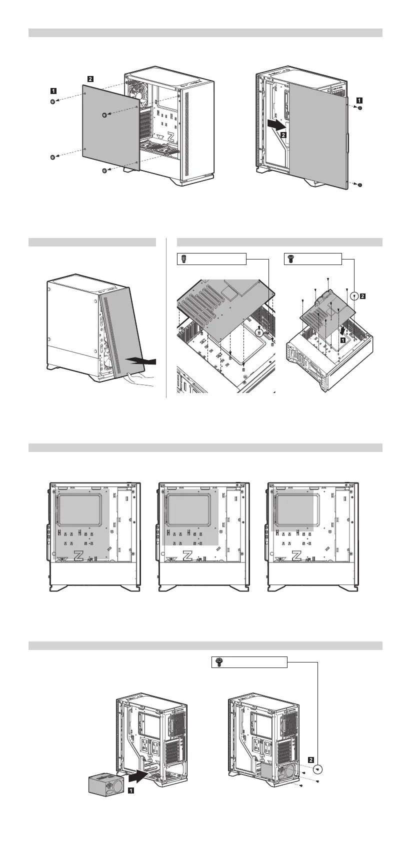 2. Démontage du panneau avant 3. Montage de la carte mère