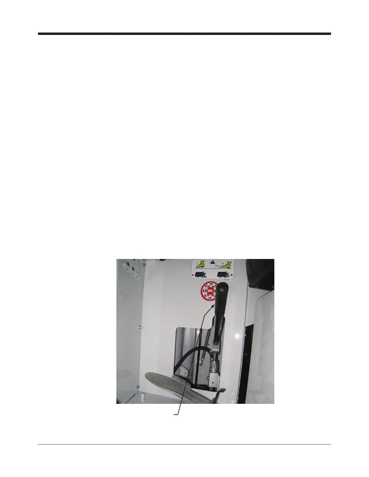 The emergency hand pump is located in the driver area of the machine. The pump handle