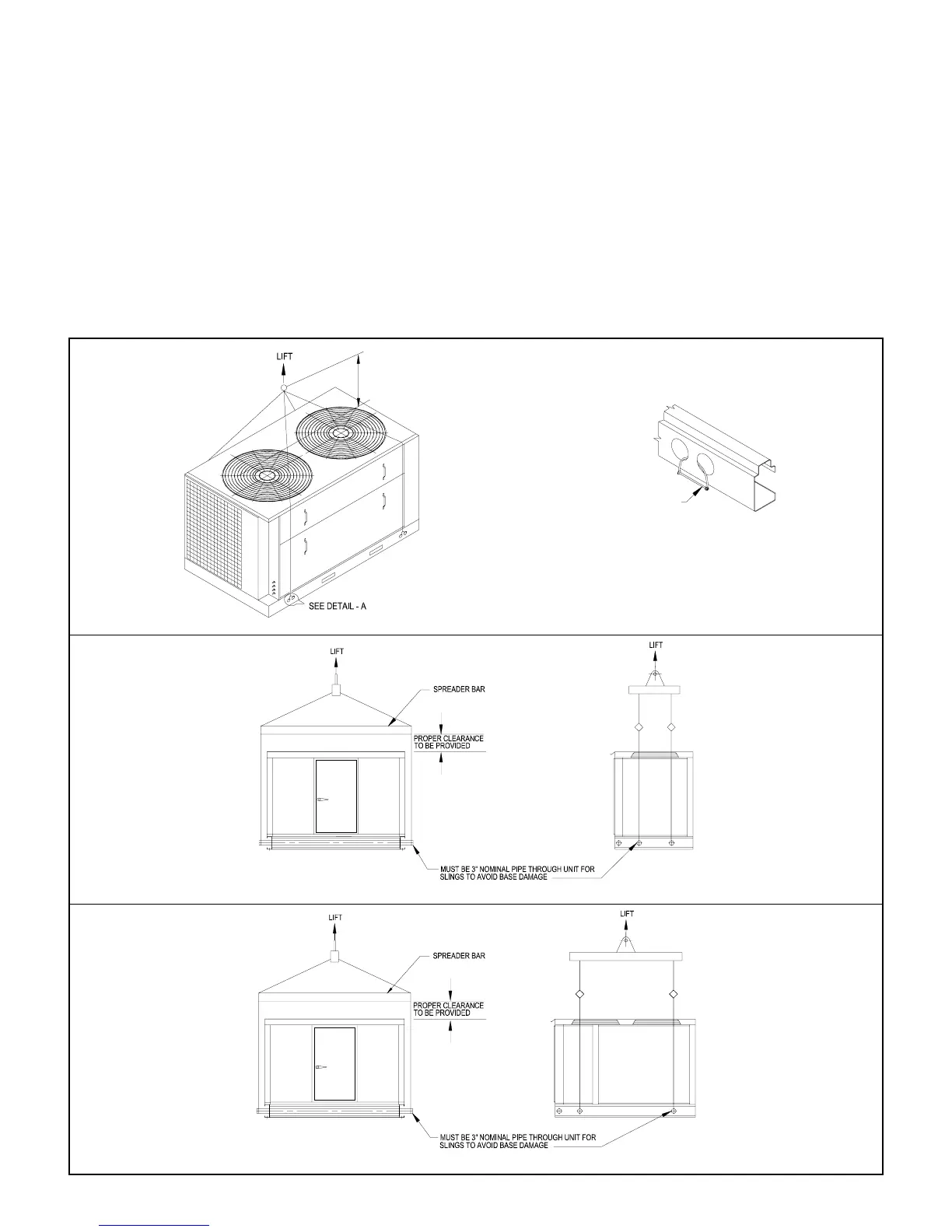 6" (152 mm) above roof surface. Place unit above a load-bearing wall, isolate unit and piping set from structure. Use