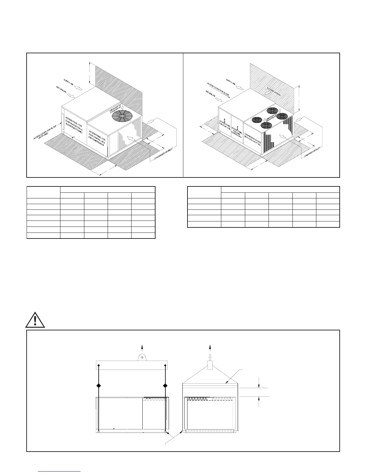 • Use wooden pallet or spreader bar when rigging, to prevent the slings from damaging the unit.