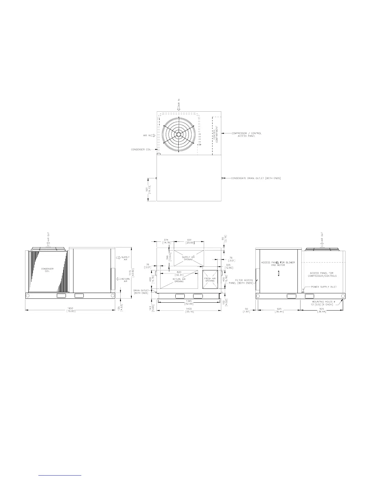 2. Service clearance should be 1200mm (4 feet) on all sides.