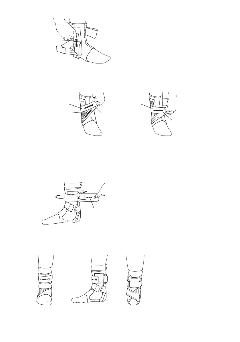Avvolgere attorno alla caviglia la fascetta con il logo (①), farla