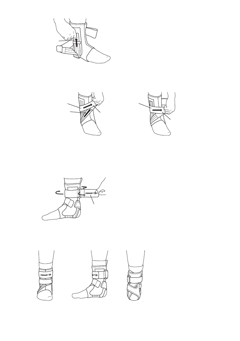 Wikkel de band met het logo om uw enkel (①), leid de band door