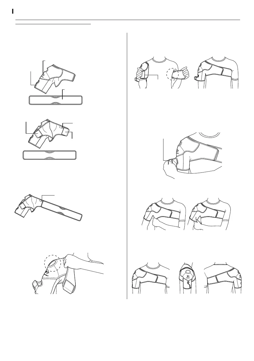 • Hieronder wordt het aanbrengen aan de rechterschouder beschreven. Volg dezelfde stappen voor de linkerschouder.