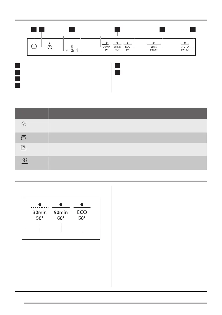 Drying phase indicator. It is on when a programme with the drying phase is selected. It flashes