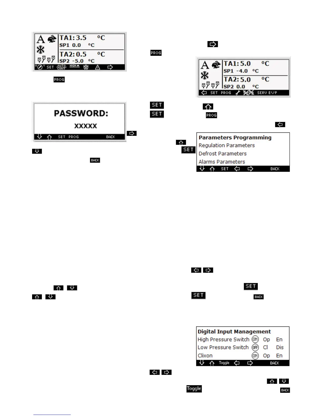 switch from one screen to the other, in order to identify the parameter to be modif ed.