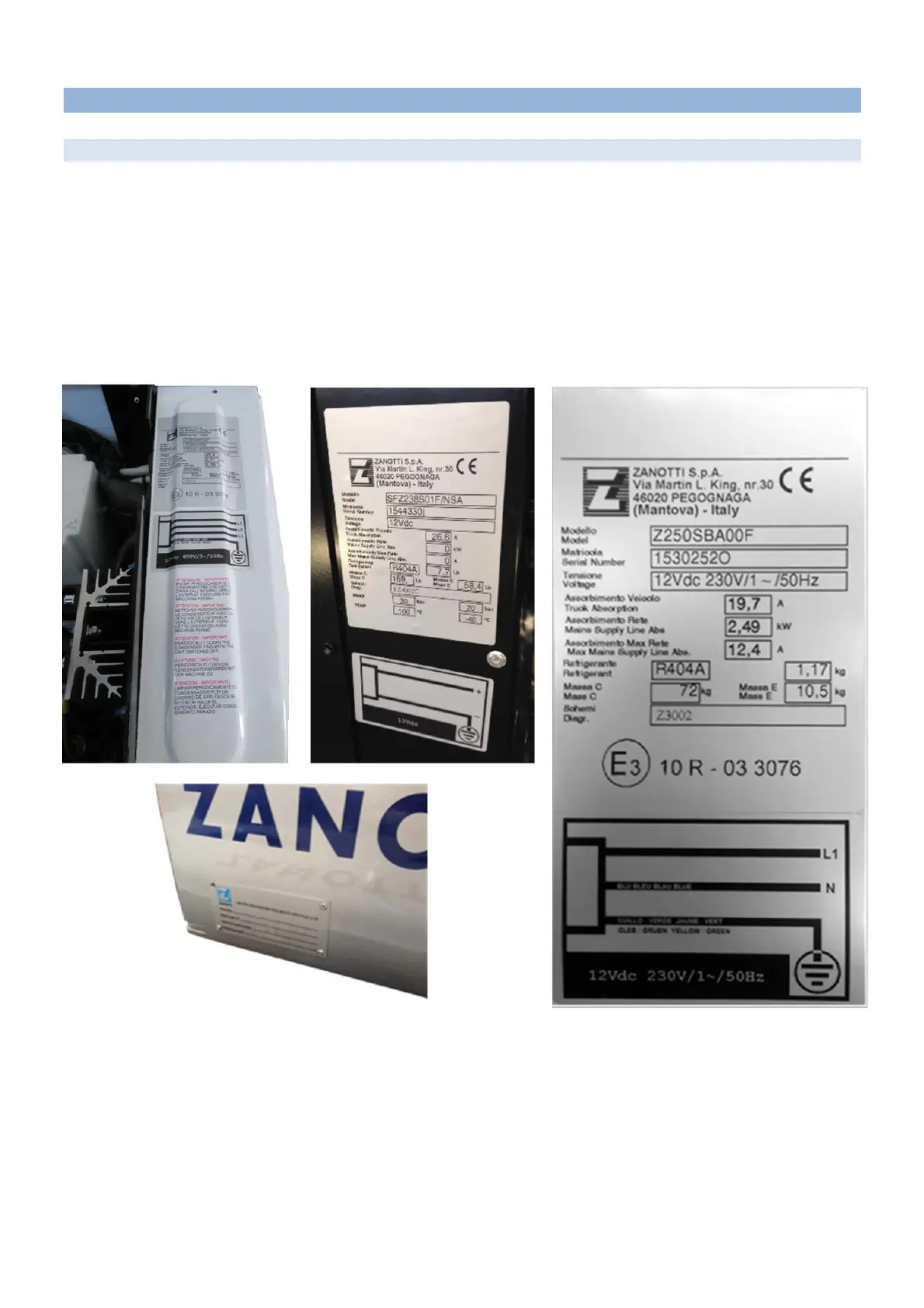 condensing unit, on the closure panel of the electrical panel or on the frame and on the plastic drip tray of the