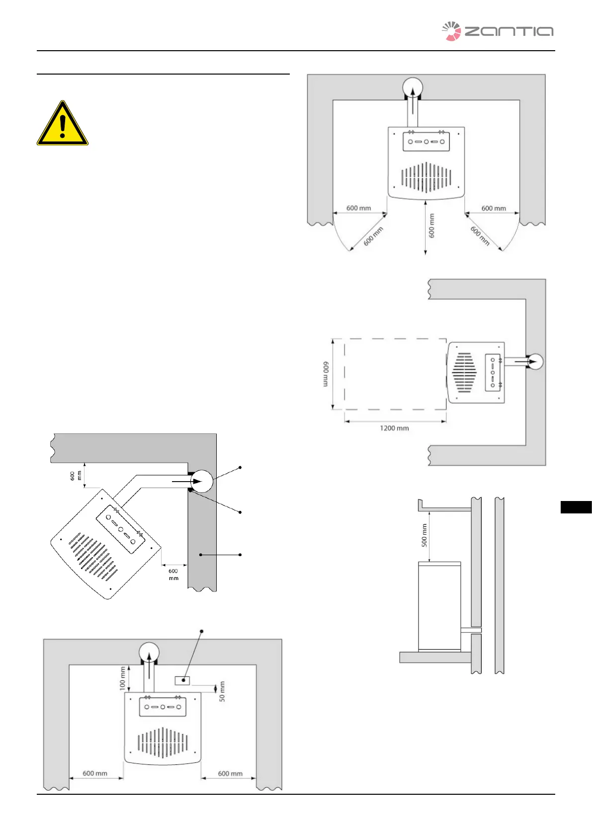 moins 20 cm entre les côtés chauds de la chaudière et d'éventuels ma-