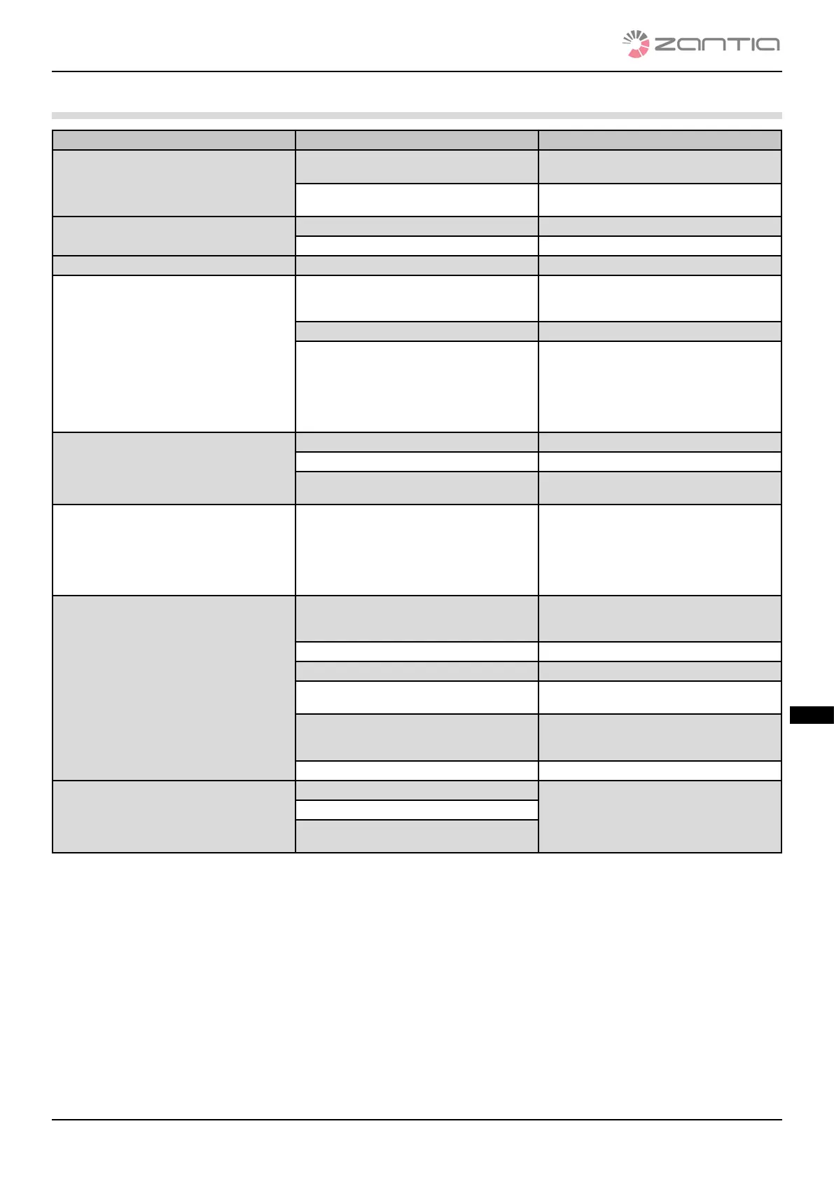 tab. 7 liste des problèmes/causes/solutions