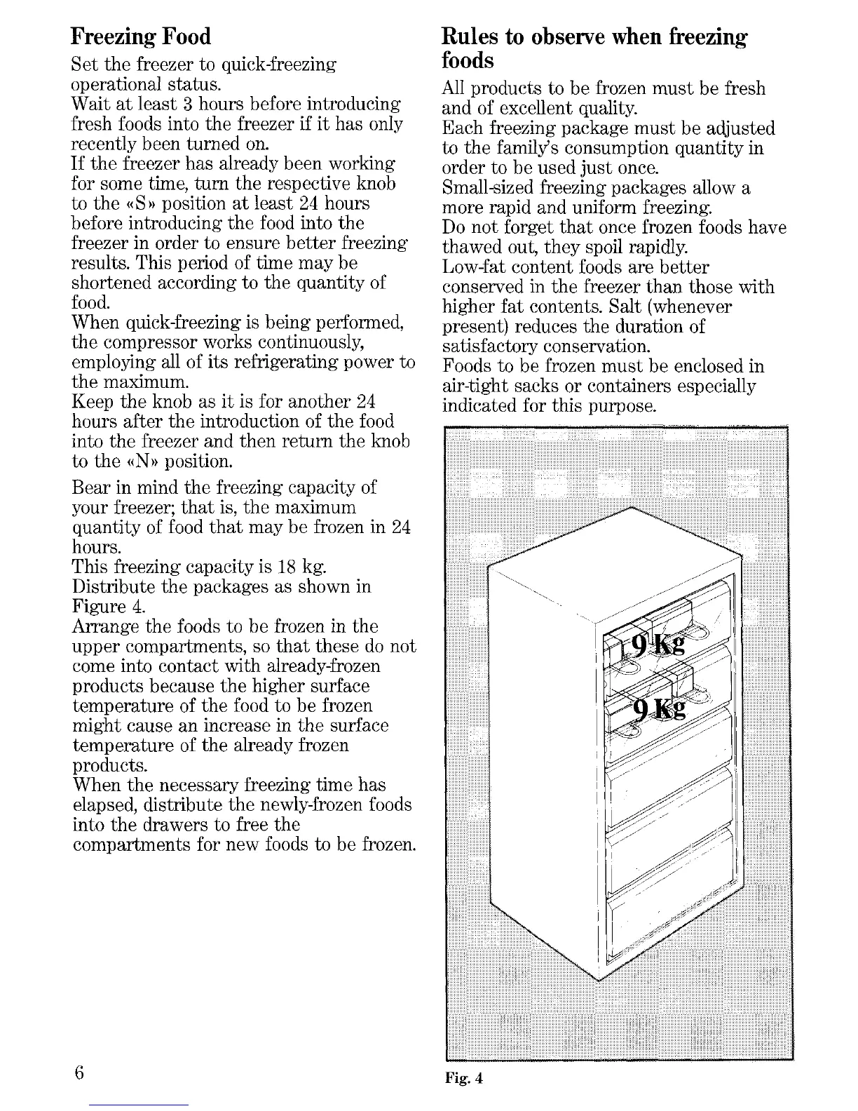 Zanussi DV67 - Freezing Food; Rules to observe when freezing foods