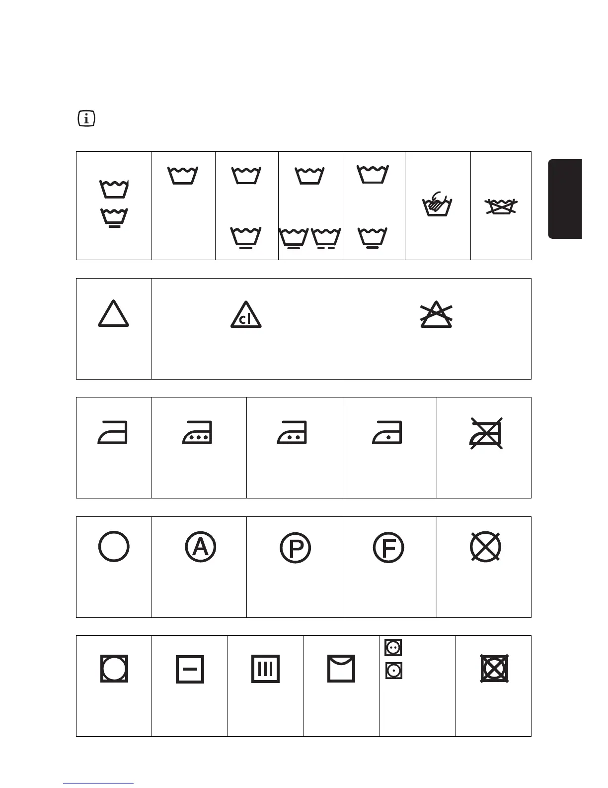 These symbols appear on fabric labels, in order to help you choose the best way to treat your laundry.