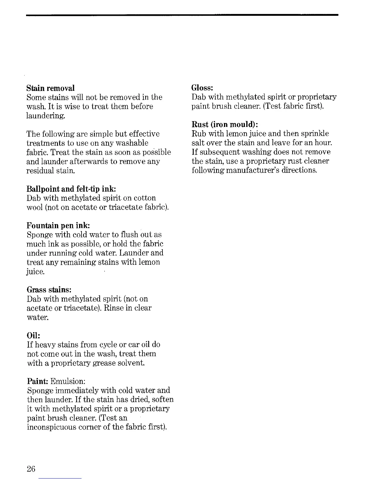Zanussi FL1012 - Stain Removal; Fountain Pen Ink; Grass Stains; Oil