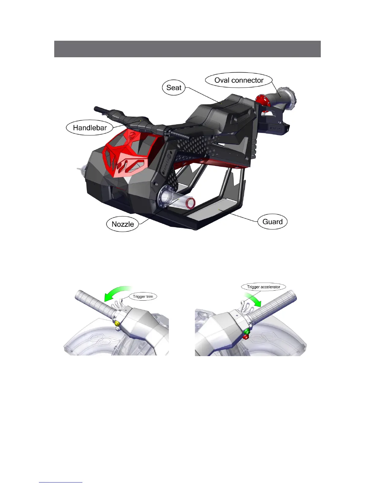 ZAPATA FLYRIDE - Anatomy of Zapata Flyride; Main Components Identification; Handlebar Trigger Controls