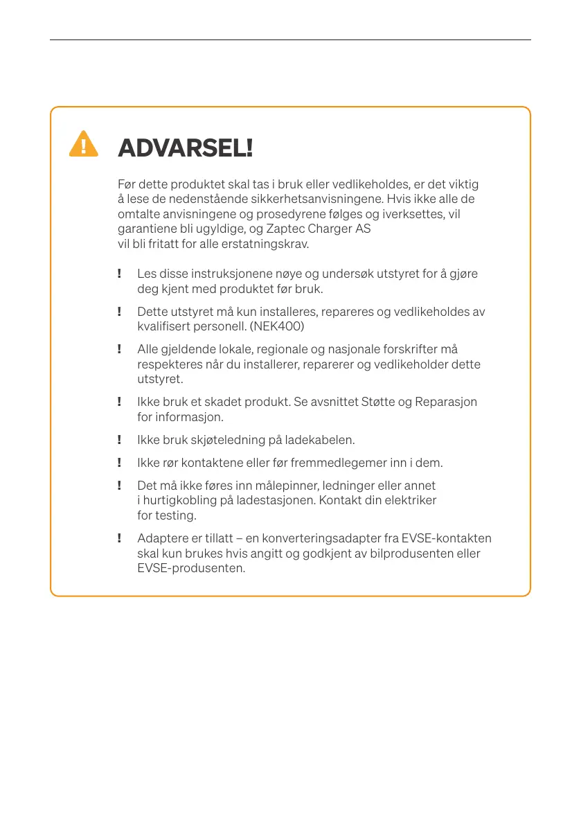 ! Dette utstyret må kun installeres, repareres og vedlikeholdes av