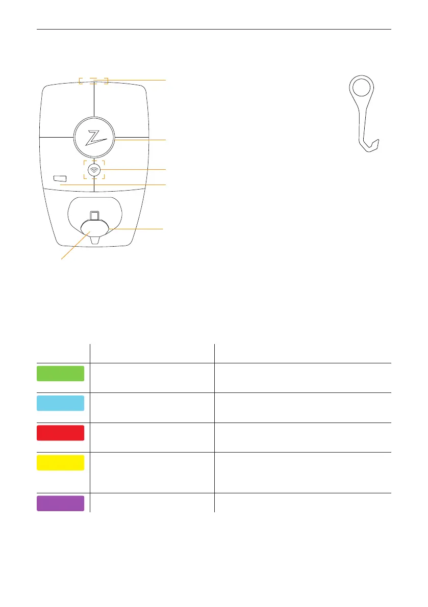 Status for ladestationen vises af statusindikatoren (Z) ved hjælp af følgende farver:
