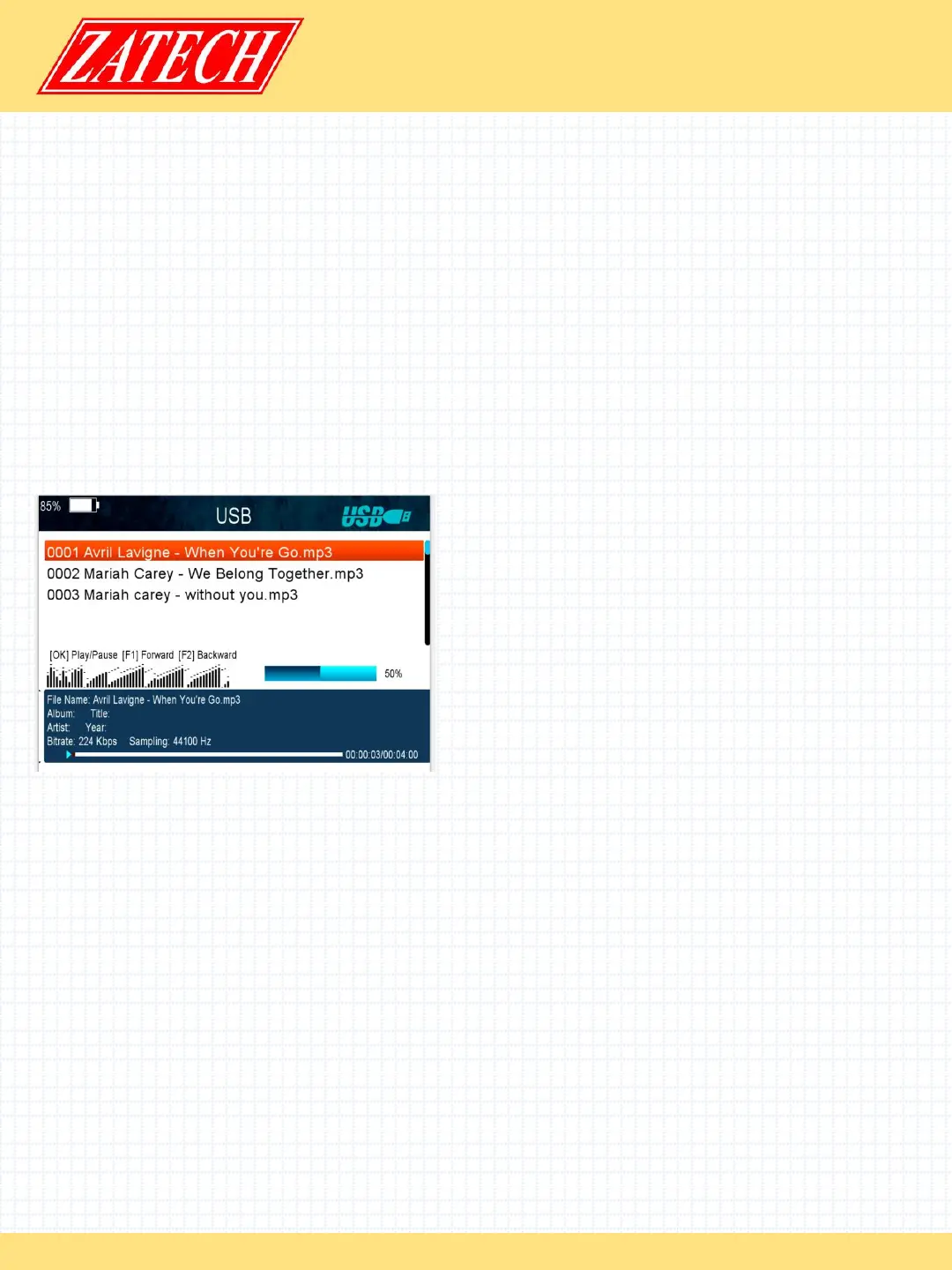 1. Go to Main Menu ->Expansion->USB to enter the USB menu.