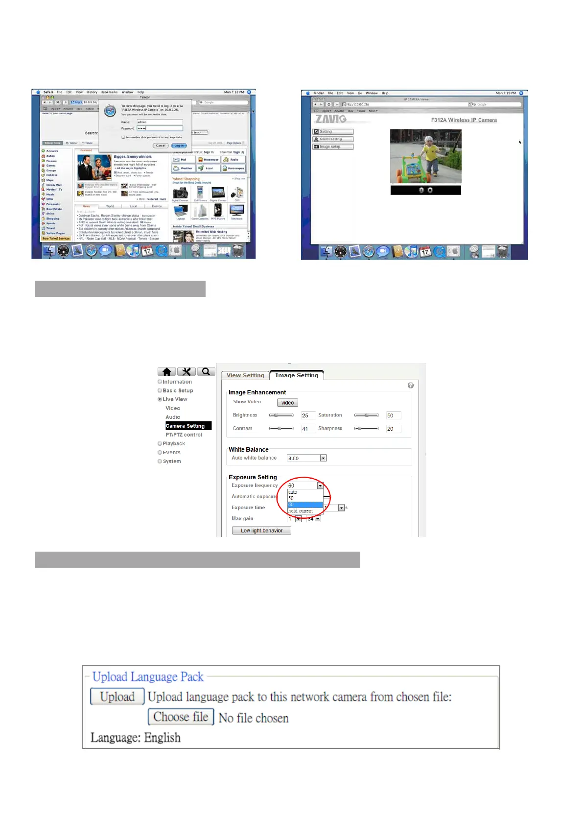 IP camera. (Default is admin / admin)