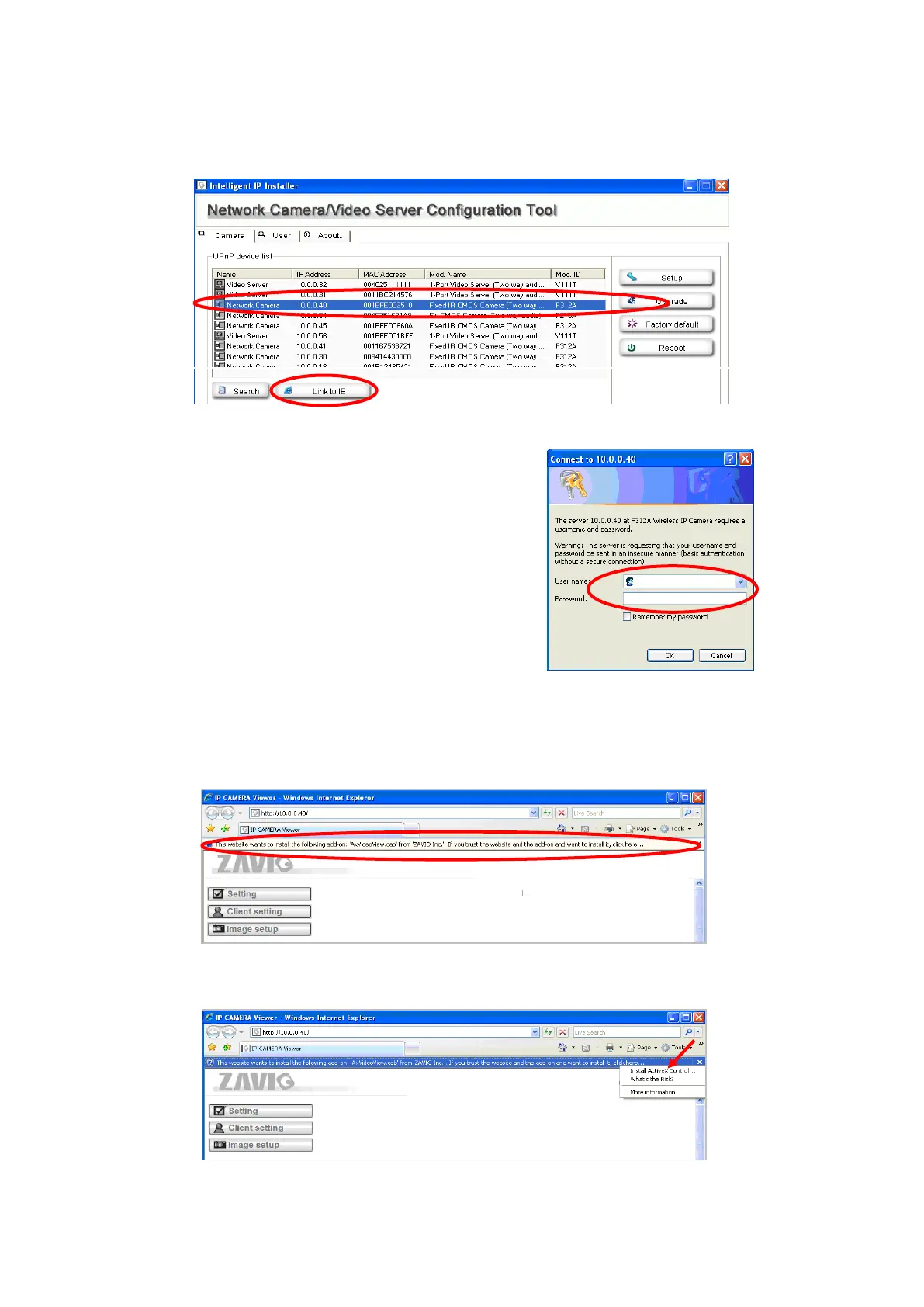 active camera and video server devices. Select the relevant IP camera from the list and click