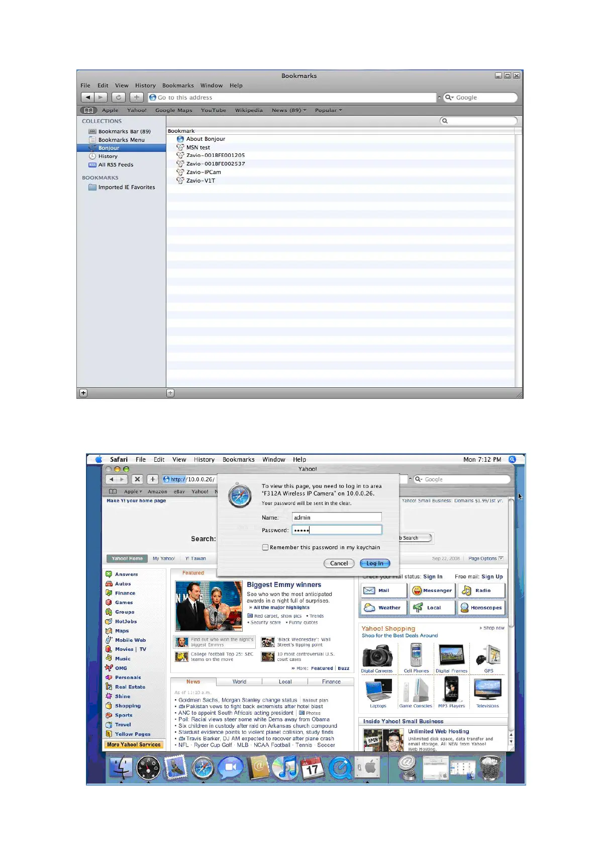2. Click Bonjour function and select the camera you wish to access.
