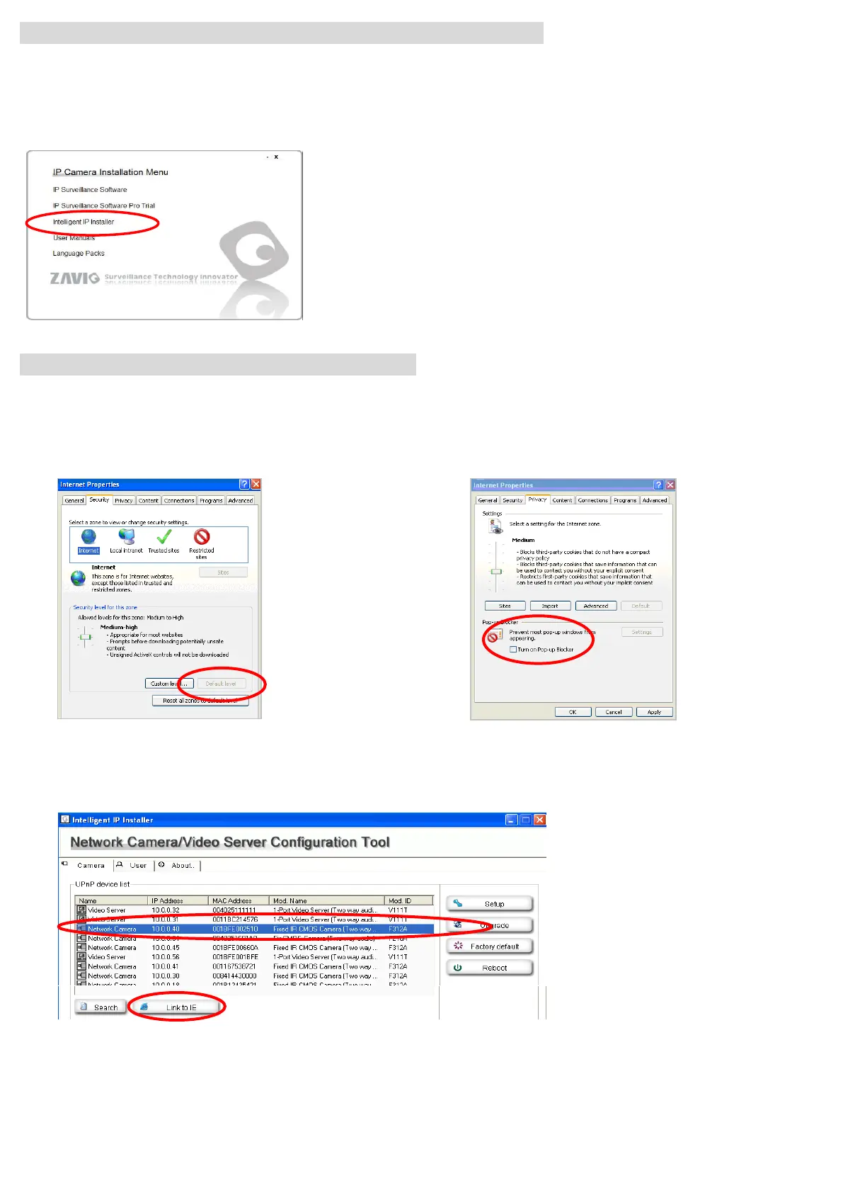 camera and video server devices. Select the relevant IP camera from the list and click Link to IE.