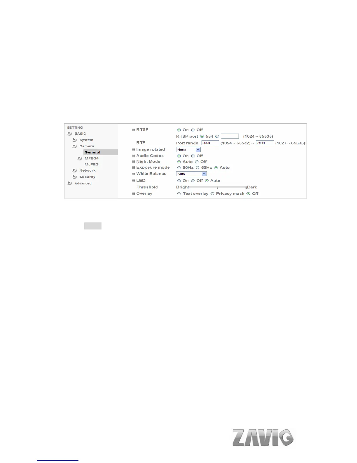 RTSP : Switch RTSP “On” or “Off.” The default value is 554.