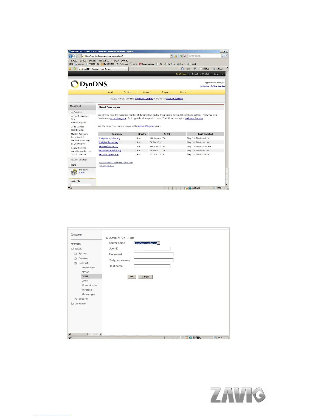 6. Type your DDNS User ID, Password and Host name in Setting Network