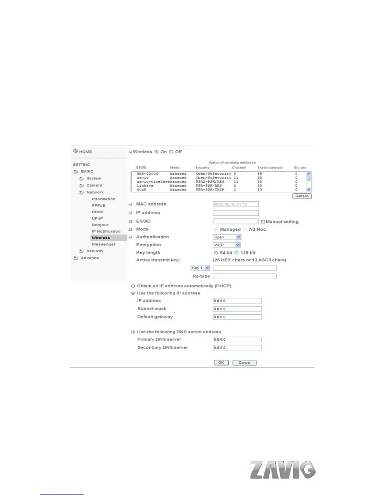 connection. Wireless settings must be the same as the access point or ad-hoc device.