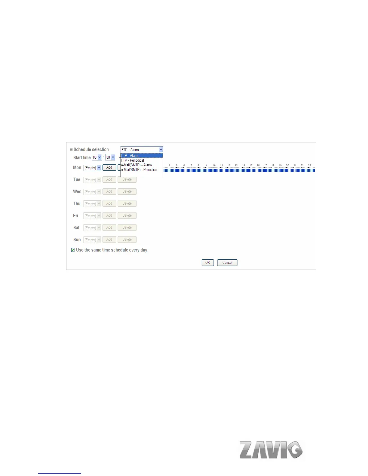 Use the same time schedule every day: When this is checked, the Start