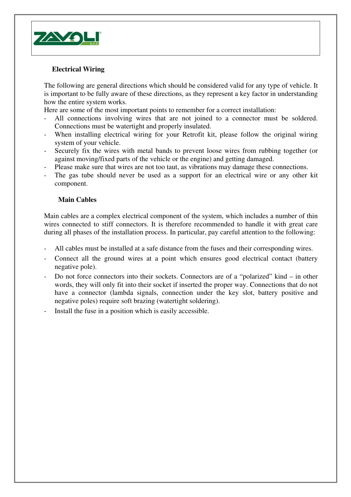 - All cables must be installed at a safe distance from the fuses and their corresponding wires.