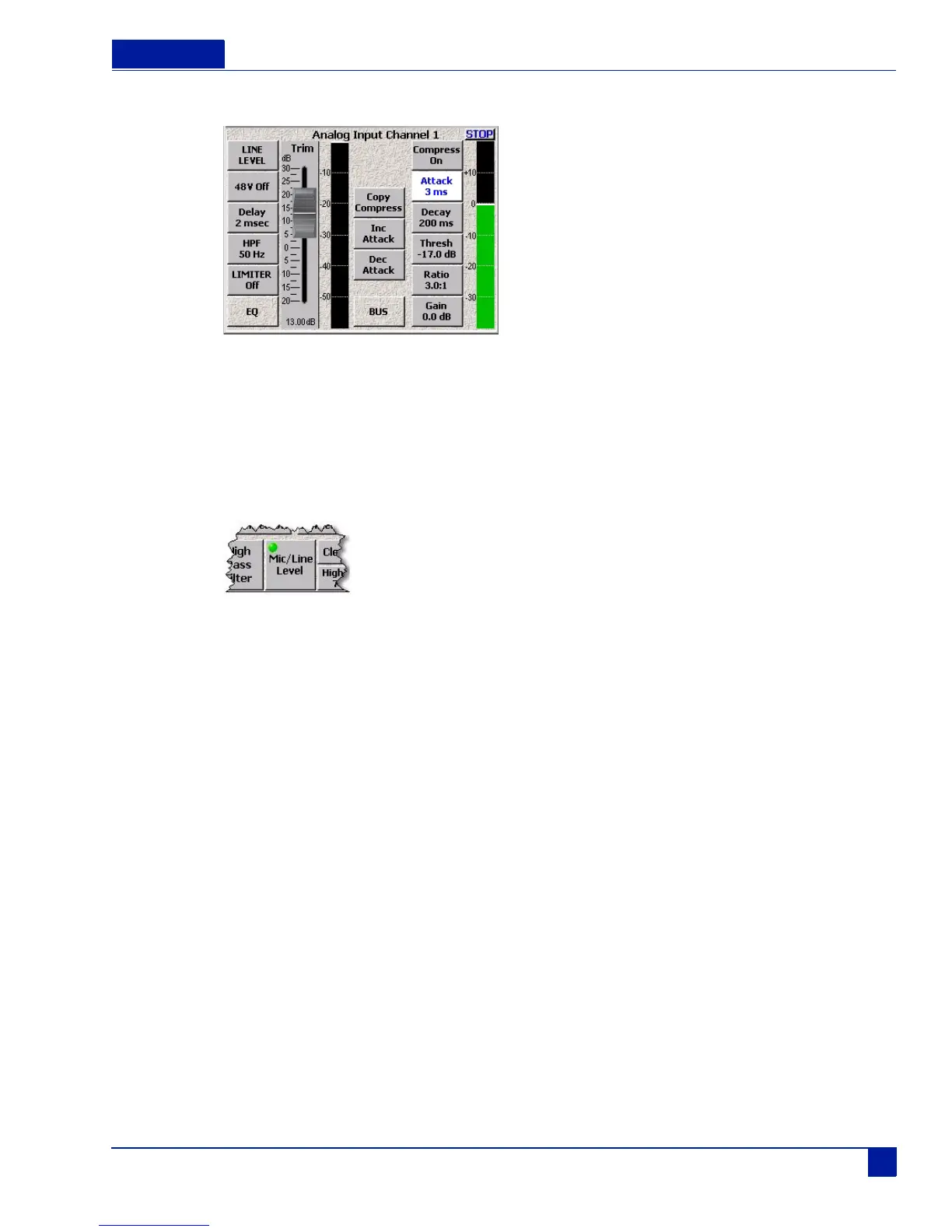 If you press the Mic/Line button without pressing the Mic/Line button, you open the Input Channel screen.
