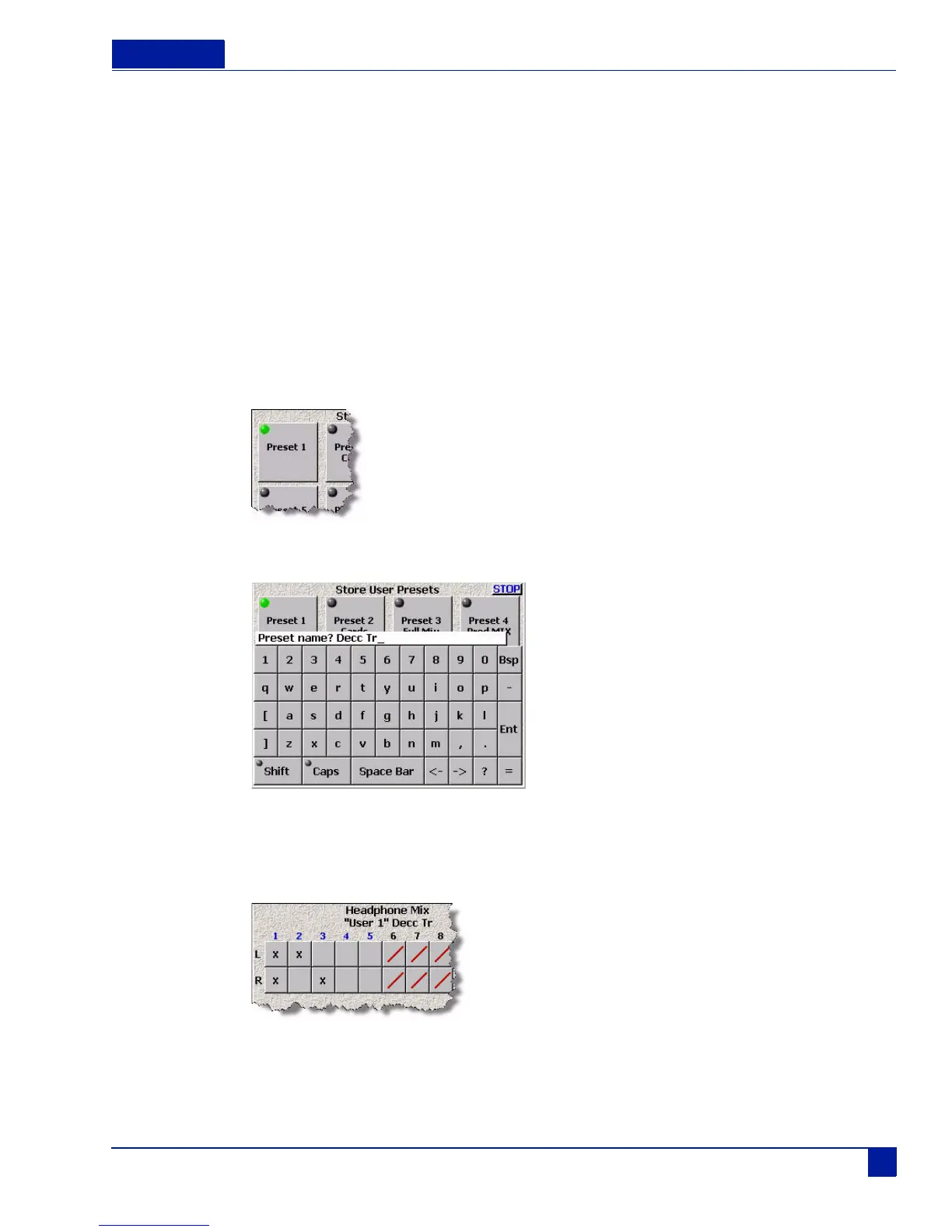 Note: The preset name does not immediately appear on the button. However, the next time you go into the Get User
