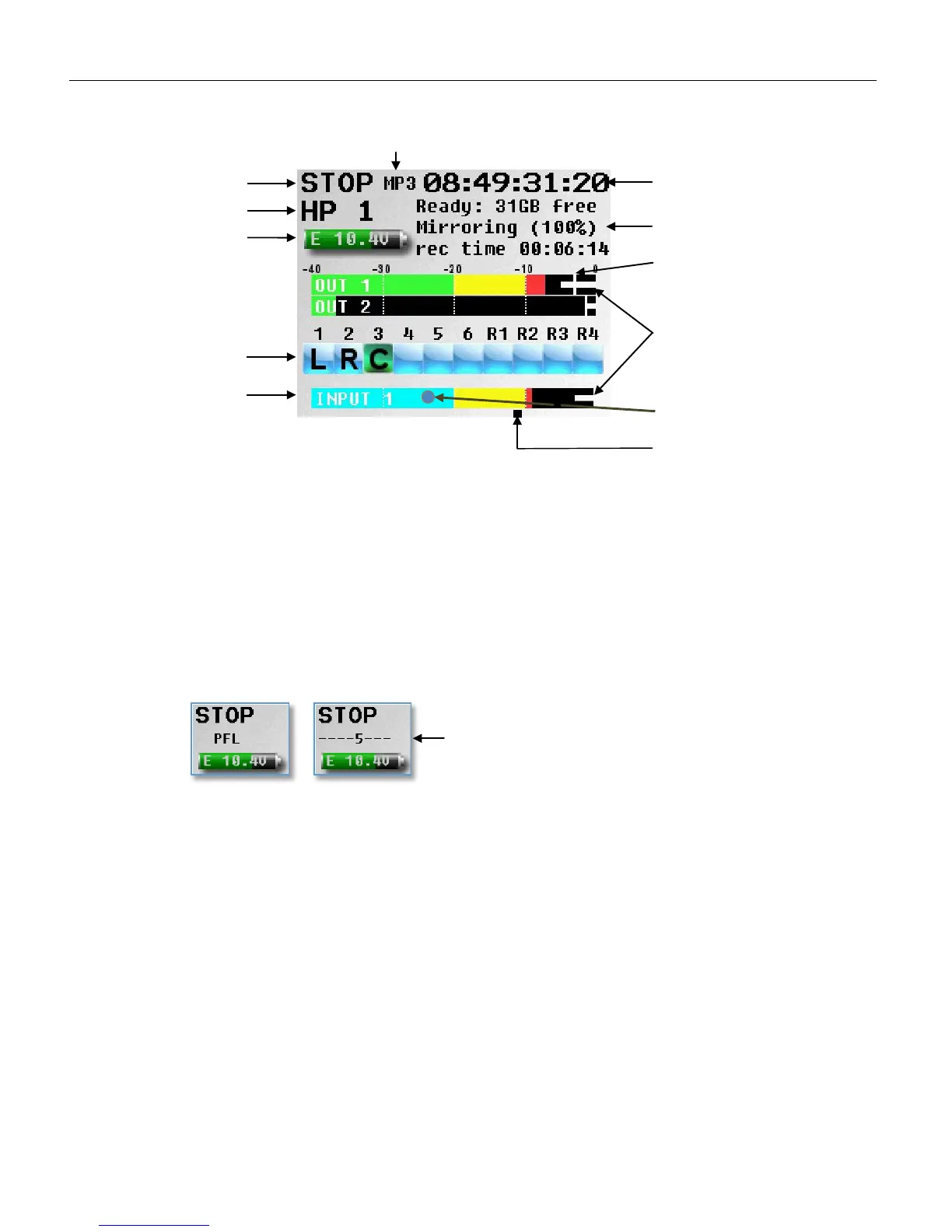 • If the PFL key is pressed, the name in the Headphone Monitor field is replaced with “PFL” alternating