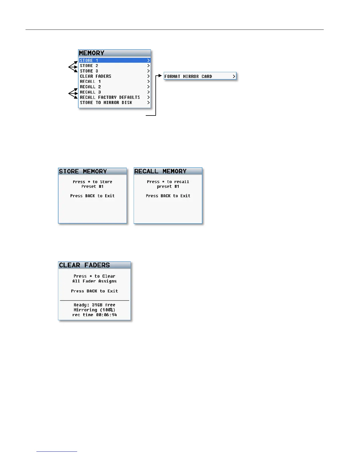 MAIN MENU Memory Menu