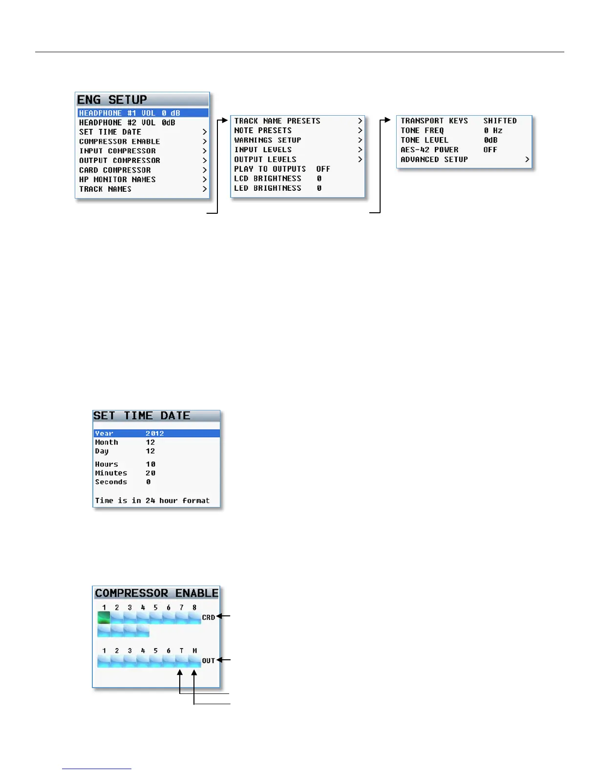 The compressor matrix sets which card tracks, output busses, and if the tape out or mono out will have