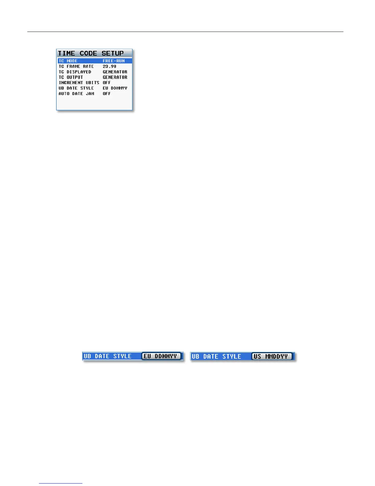 • CJAM – Time code and user-bits are continuously updated from a connected external source.