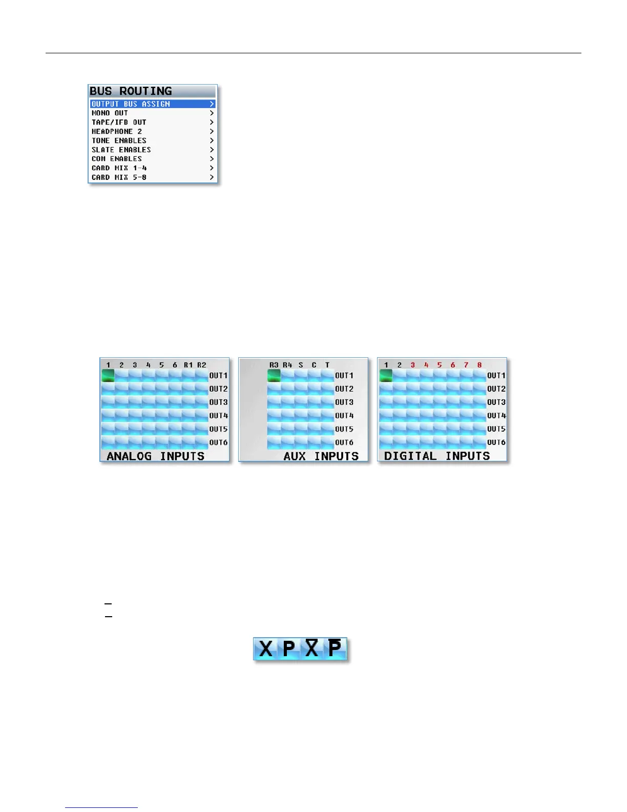 and output bus, where you want to send that specific input. Press the MENU knob to cycle through the available