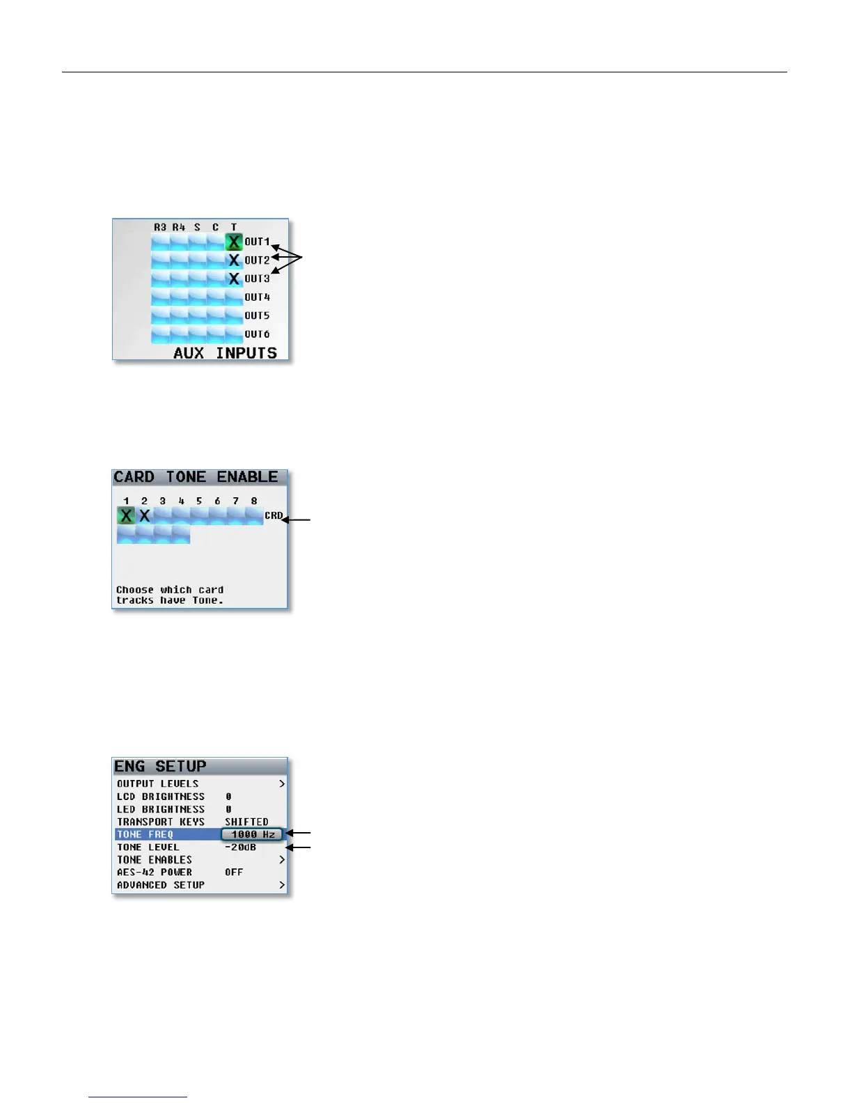 To assign tone to card tracks, press the BUS Key and go to the tone enable matrix to select which card tracks will