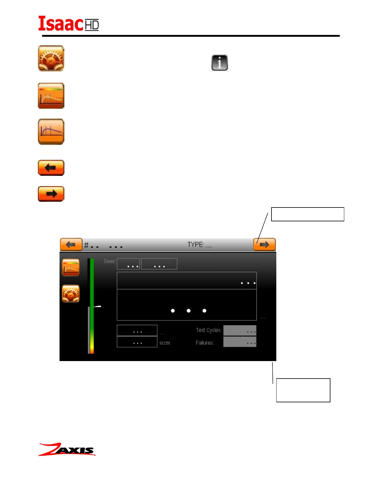 Cycle between the run screen selections. (Graph, Numeric, and Bar)